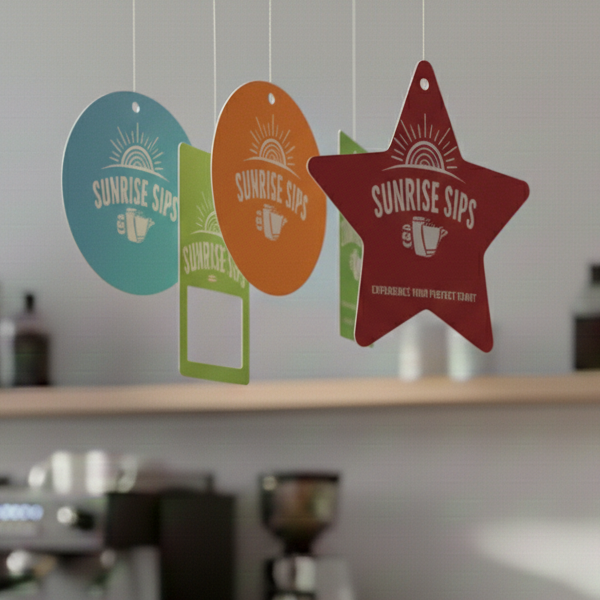 What materials are typically used for danglers?We generally use high-quality folding boxboard (FBB) or duplex board ranging from 250 GSM to 400 GSM, depending on the size and desired stiffness of the dangler.Can you create danglers in custom shapes?Yes! As a specialized custom dangler manufacturer, we use precision die-cutting to create danglers in any shape—such as bottle shapes, logos, or geometric patterns.Is double-sided printing more effective?Since danglers hang from ceilings or brackets and rotate with air movement, double-sided printing ensures your brand message is visible to customers walking in both directions.What is the minimum order quantity for printed danglers?We cater to both small promotional runs and large-scale corporate orders. Contact our Edayar office at 0484 297 7670 for a quote tailored to your quantity.Do the danglers come with strings attached?We provide danglers with pre-punched holes. Depending on your requirement, we can also supply the necessary hanging strings or plastic loops for easy installation.